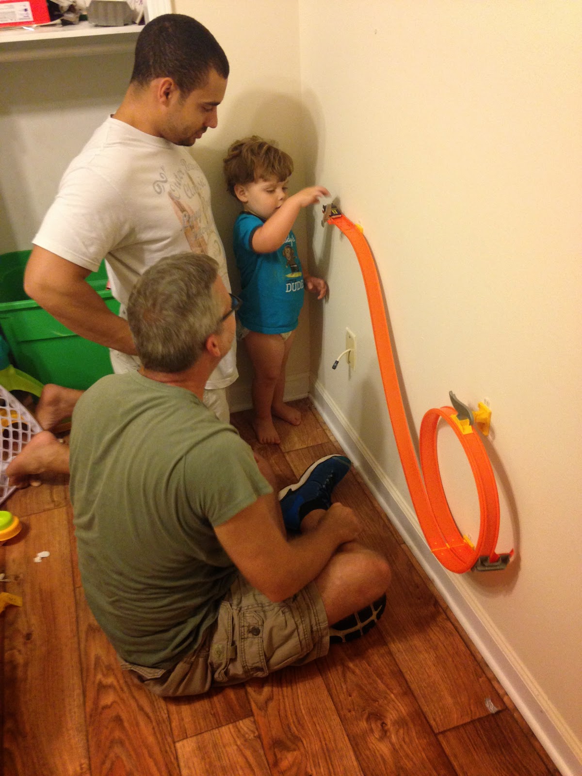 He arrived on Friday evening, just in time for dinner. The second he walked in the door, Xavier started showing off. He was running around crazy, jumping on furniture and wouldn't leave grandpa alone!!